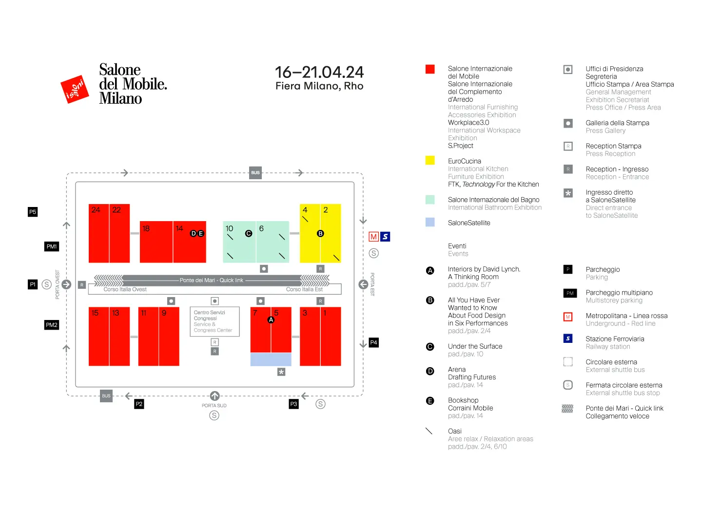 Pavilhões 14/18: Destinados aos ícones do design italiano, estes espaços contarão com os nomes mais influentes da história.